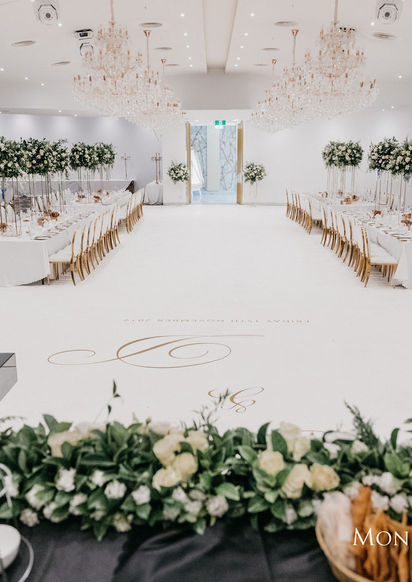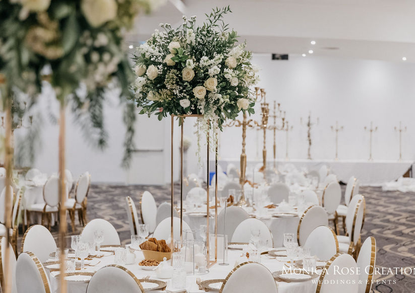 Elegant wedding florals for the gorgeous couple Dilara and Omer at the Grand Paradiso Reception, Fairfield. This timeless design featured seasonal spring white blooms, including roses and orchids, styled in a natural, organic arrangement. Lush green foliage added softness and depth, while subtle gold accents beautifully complemented the venue’s grand chandeliers and luxurious setting.